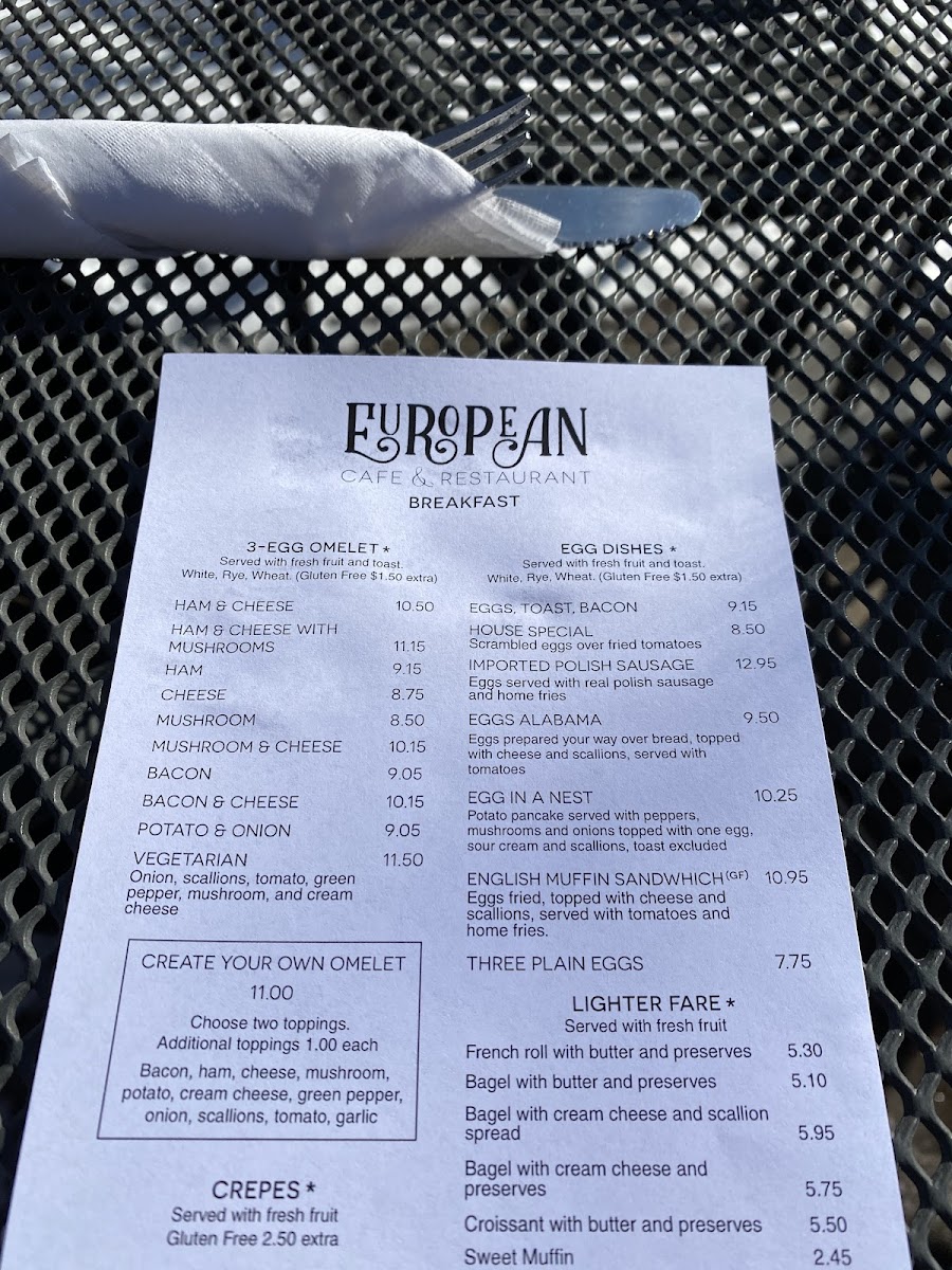 Served with fresh fruit and toast. Choose 2 toppings: bacon, ham, cheese, mushroom, potato, cream cheese, green pepper, onion, scallions, tomato, garlic. Additional toppings - each 2.00