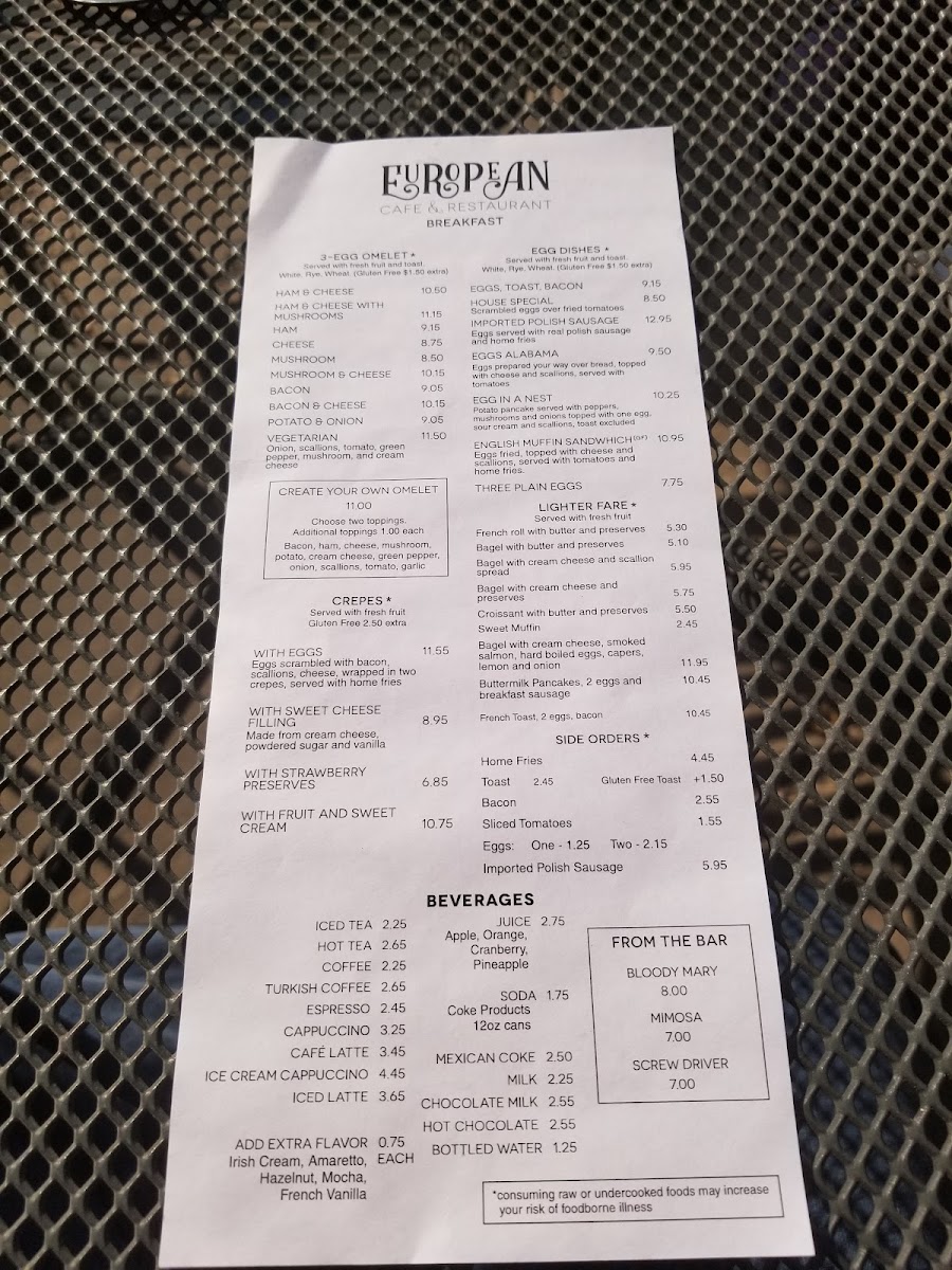 Served with fresh fruit and toast. Potato pancake w/bell peppers, mushrooms and onions topped with one egg and scallions. Served with sour cream. (toast excluded)