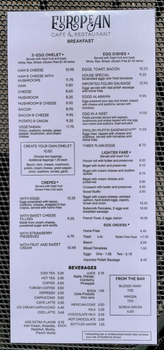 Served with fresh fruit and toast. Eggs served w/polish sausage & home fries